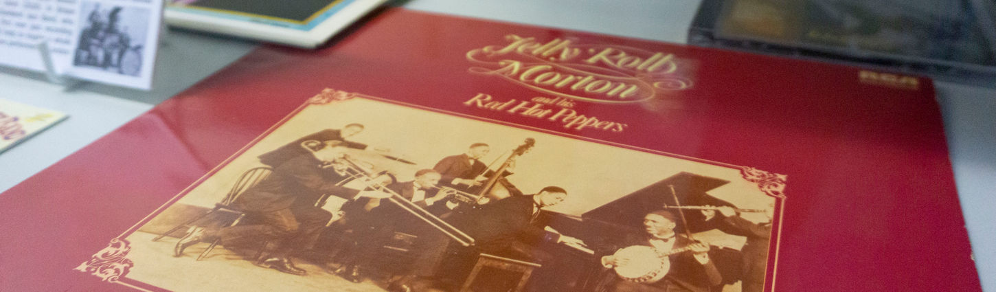 The ‘Original Dixieland Band’ (ODJB) from New Orleans made the first-ever jazz record in 1917 (‘Livery Stable Blues/Dixie Jass Band One Step’) and their arrival in London for a long season at Hammersmith Palais in 1919 had included a Command Performance for King George V. Their arrival, along with more new 1920s jazz recordings by American names including cornettist Red Nichols (and a little later Louis Armstrong) spawned a whole new generation of young British and European jazz musicians including trumpeter Nat Gonella, all of whom would go on to their own successful careers in the UK. In America Swing was now the thing amid a whole new generation of instrumental stars including clarinettist Benny Goodman (dubbed ‘The King of Swing’from 1935) and new singers too; amongst them the great Billie Holiday . In Britain one key figure was Patrick Cairns ‘Spike’ Hughes who played a tin double bass and recorded prolifically for the Decca label with his British orchestra and small group ‘Decca-Dents’. In 1933 Hughes travelled to New York to produce classic recordings with his all-star ‘All American Orchestra’ and his original hand-written scores for this ground-breaking project including ‘Donegal Cradle Song’ (which you can see in the case) are held here at The Jazz Centre UK.